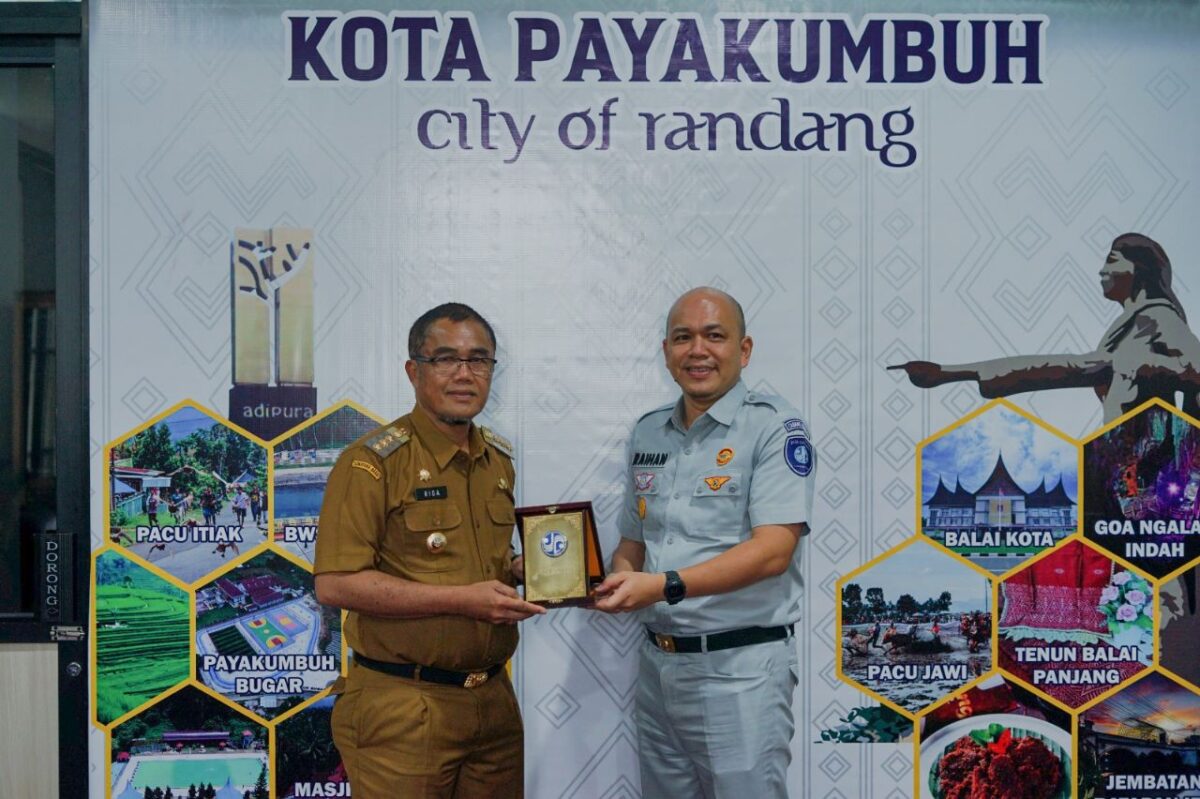 HARIANHALUAN.ID – Bertempat di Balai Kota Payakumbuh, Senin (12/06/2023) Kepala Jasa Raharja Cabang Sumatera Barat, Raihan Farani beserta jajaran melakukan silaturahmi sekaligus audiensi dengan Wali Kota Payakumbuh, Drs. H Rida Ananda, M.Si. Turut hadir juga dalam kesempatan tersebut Iptu Doni Putra, SH, Kanit Gakkum Polres Payakumbuh, Kepala UPTD Penerimaan Pendapatan Daerah Payakumbuh, Yanidar dan Kepala Jasa Raharja Putera Mira Alida.
