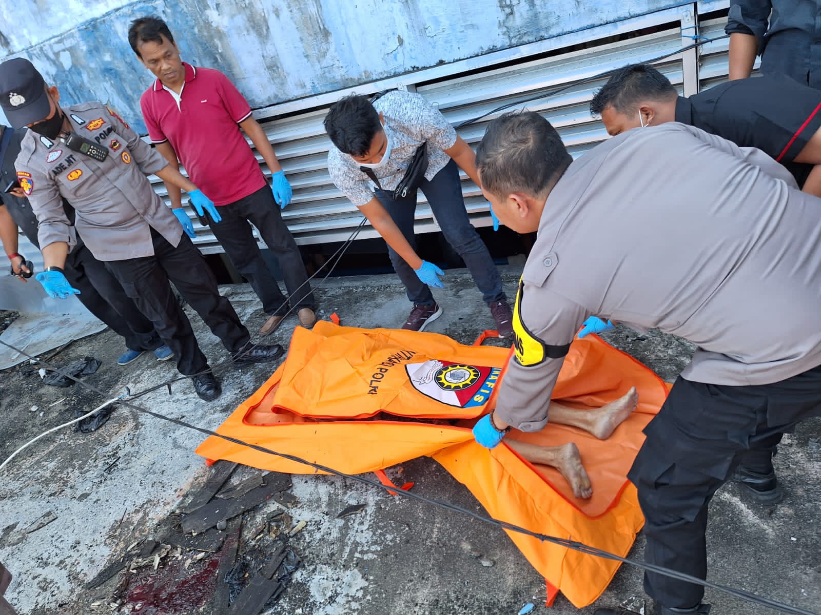 Sementara di lokasi jatuhnya korban, juga ditemukan ceceran bercak darah yang diduga berasal dari pergelangan tangan korban yang telah teriris sebelumnya.