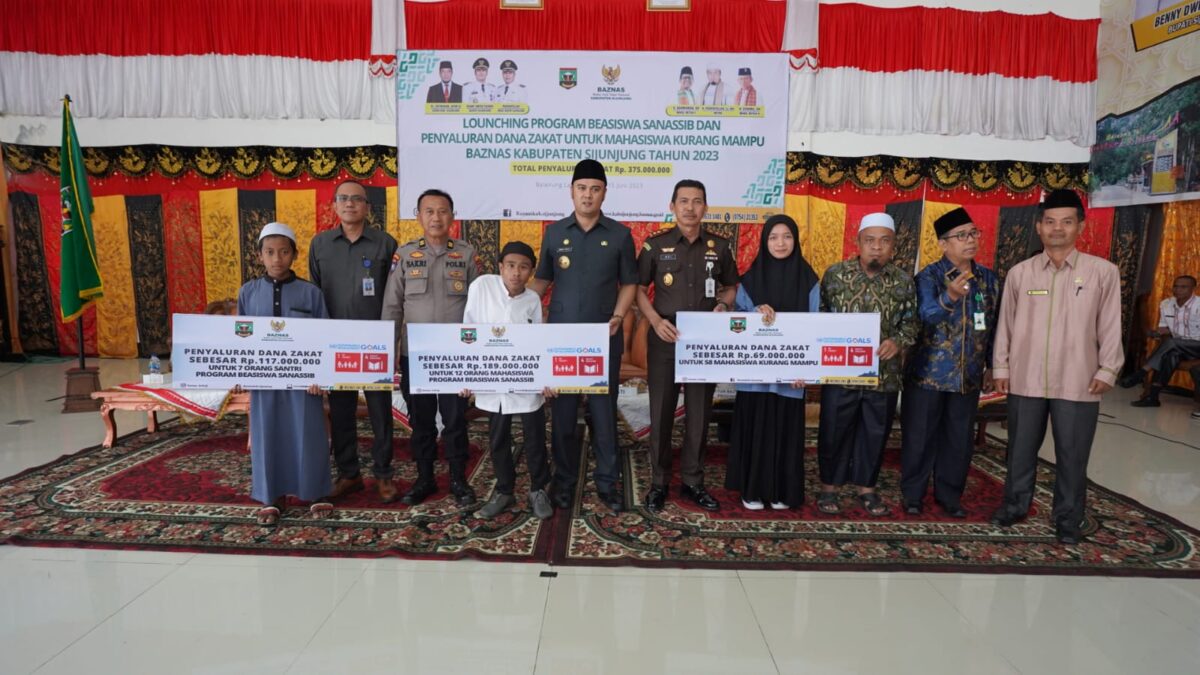 SIJUNJUNG, HARIANHALUAN.ID — Badan Amil Zakat Nasional (Baznas) Kabupaten Sijunjung menyalurkan dana zakat dalam bentuk bantuan beasiswa untuk siswa dan mahasiswa kurang mampu sebesar Rp375 juta, Jumat (16/6).