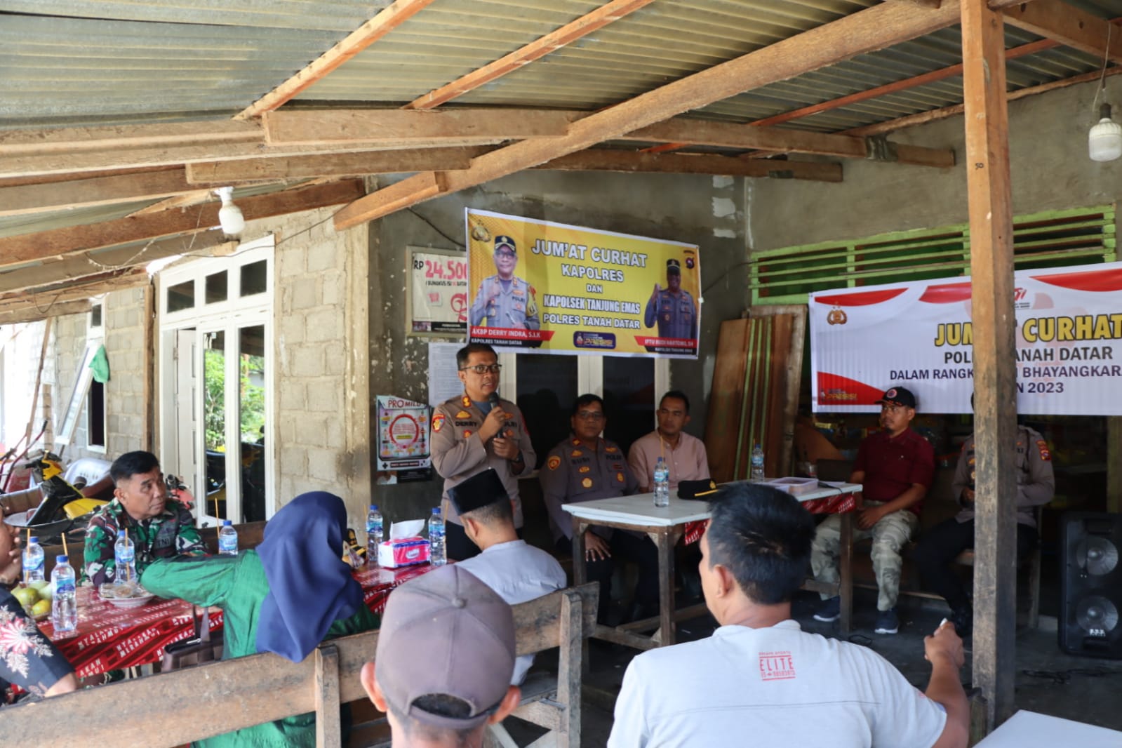 HARIANHALUAN.ID – Jajaran Polres Tanah Datar menyelenggarakan program rutin Jumat Curhat. Kali ini dilakukan di salah satu warung milik warga yang ada di kawasan Saruaso Barat, Nagari Saruaso, Kecamatan Tanjung Emas, Jumat (16/6/2023).