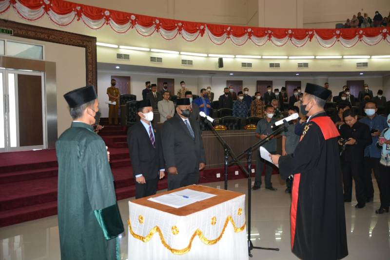 Pelantikan dipimpin langsung oleh Ketua DPRD Kabupaten Sijunjung, Bambang Surya Irwan dengan tetap mengikuti protokol kesehatan.