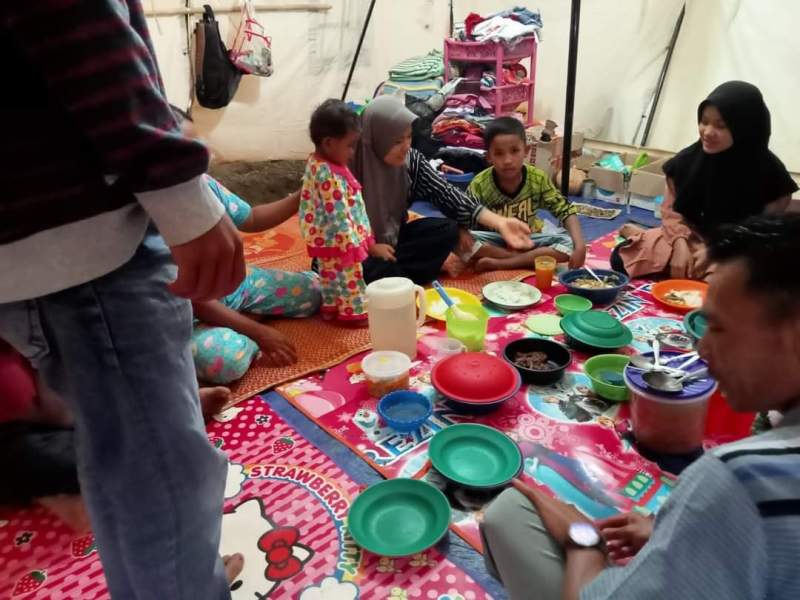 Salah seorang pengungsi Sina (55) mengatakan, ia terpaksa bertahan di tenda pengungsian karena rumahnya rusak akibat gempa. Ia ragu dan takut jika ada gempa susulan dan bisa menyebabkan korban jiwa akibat rumah runtuh.