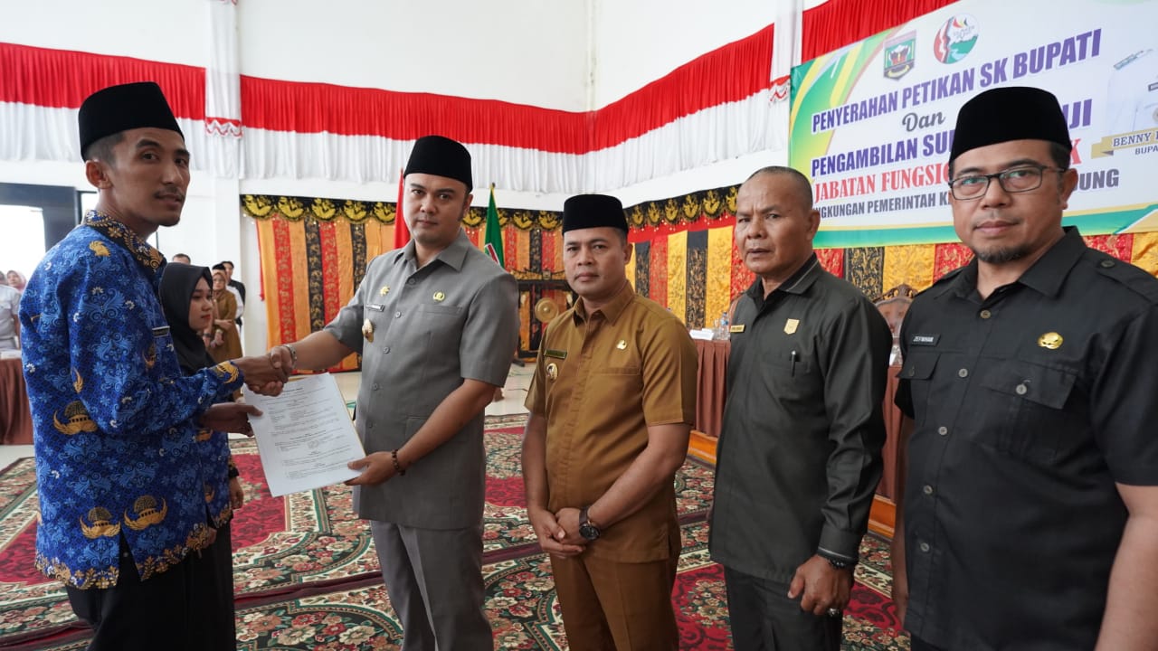SIJUNJUNG, HARIANHALUAN.ID — Bupati Sijunjung, Benny Dwifa Yuswir menyerahkan Surat Keputusan (SK) Pengangkatan Pegawai Pemerintah dengan Perjanjian Kerja (PPPK) di Balairung Lansek Manih, Selasa (20/6).