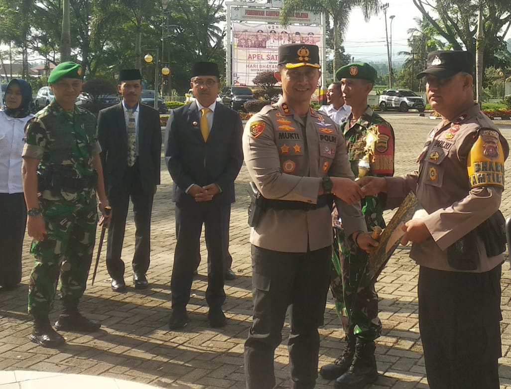 Kapolres Solsel memberikan penghargaan kepada Satkamling berprestasi di halaman Kantor Bupati Solok Selatan, Rabu (21/6). KIKI NOFRIJUM