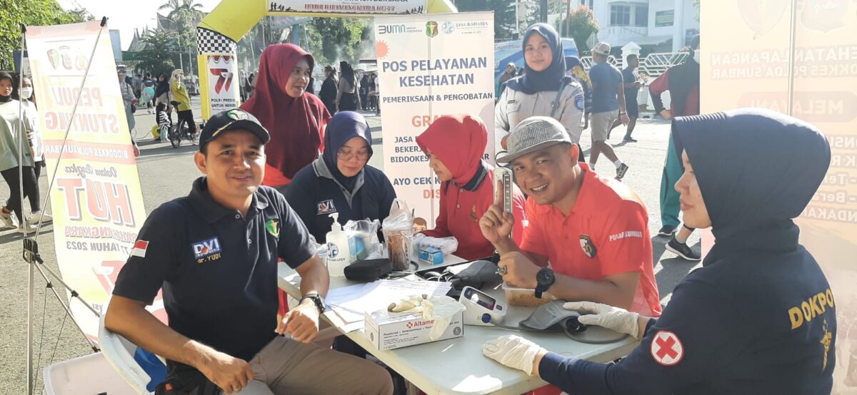 Jasa Raharja Cabang Sumatera Barat juga ikut berpatisipasi dalam acara ini dengan memberikan pelayanan kesehatan gratis kepada masyarakat yang bekerjasama dengan Biddokkes Polda Sumbar pada stand yang telah disediakan oleh panitia.