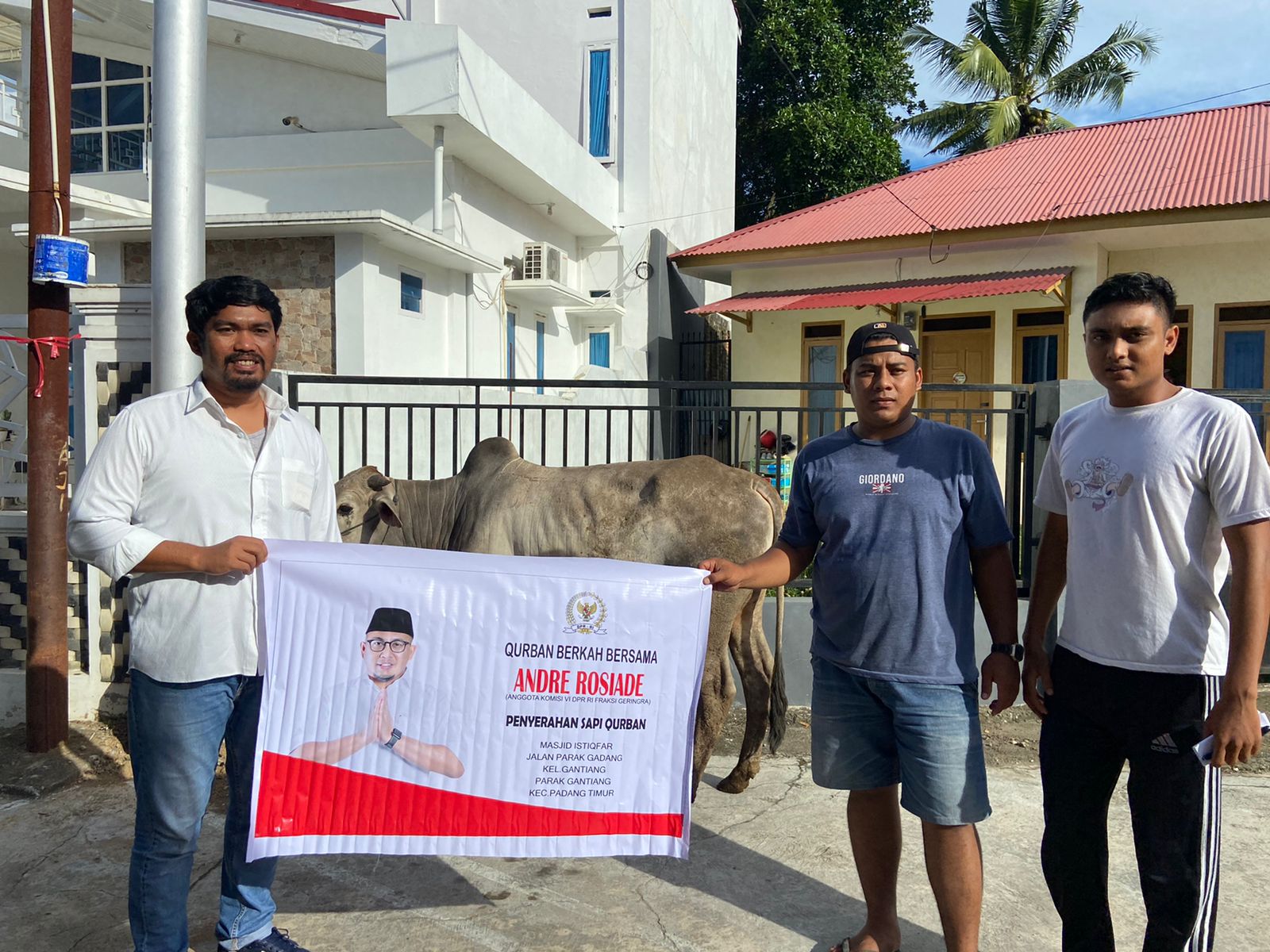 Sapi yang diserahkan mantan Ketua Komite Nasional Pemuda Indonesia (KNPI) Kota Padang itu bagian dari 58 sapi yang disalurkan Ketua DPD Gerindra Sumbar, Andre Rosiade untuk masjid dan musala di 12 kabupaten dan kota.