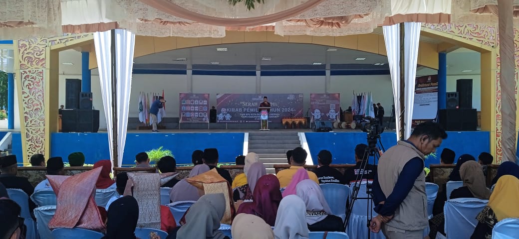 HARIANHALUAN.id – KPU Bukittinggi menyerahkan bendera Kirab Pemilu 2024 kepada KPU Kabupaten Tanah Datar. Acara serah terima dilakukan di Lapangan Cindua Mato Batusangkar dengan dihadiri oleh Bupati Tanah Datar, Ketua KPU Tanah Datar Dicky Andrika, Ketua Bawaslu, Forkopinda Tanah Datar, Ketua Partai Politik, dan PPK serta PPS se-Kabupaten Tanah Datar.