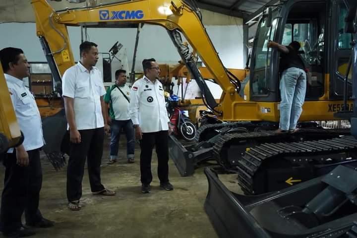 Bupati Tanah Datar Eka Putra, SE, MM didampingi Kepala Dinas PUPR Ten Feri beserta jajarannya dan Kabag Prokopim Dedi Tri Widono saat mengecek langsung alat berat yang baru dibeli di Workshop Dinas PUPR di Bukit Gombak, Rabu sore (12/7/2023), menjelaskan bahwa pengadaan dua unit alat berat ini tujuan utamanya untuk mengantisipasi seandainya terjadi bencana di wilayahnya.