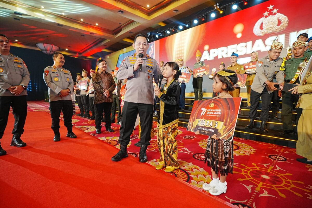 “Alhamdulillah, baru saja kita melaksanakan kegiatan penganugerahan lomba kreasi terkait dengan rangkaian HUT Bhayangkara ke-77, sekaligus juga kita memberikan hadiah atau reward kepada personel-personel Polri yang berprestasi baik dalam mengharumkan nama bangsa pada saat Sea Games kemarin. Ataupun beberapa lomba internasional lainnya,” kata Sigit.