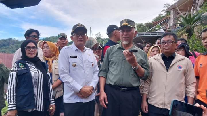 HARIANHALUAN.id – Wali Kota Hendri Septa bersama Plt. Sekretaris Utama (Sestama) Badan Nasional Penanggulangan Bencana (BNPB) Rustian dan Gubernur Sumatera Barat Mahyeldi meninjau lokasi banjir dan longsor di RT 03/RW 09 Kelurahan Mata Air dan Maransi RW 04 Kelurahan Aia Pacah, Sabtu (15/07/2023).