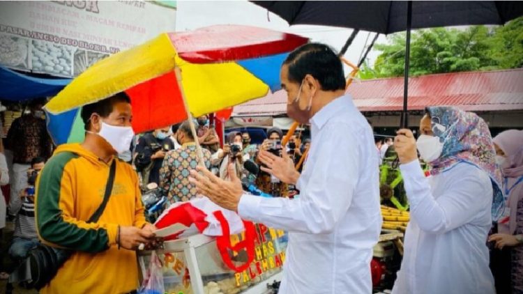 “Yang Rp1,2 juta silakan dipakai buat modal usaha, modal kerja, yang Rp300 ribu buat beli apa?” tanya Presiden kepada para pedagang.