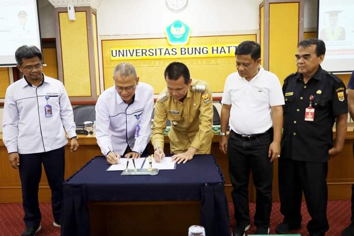 MoU (Memorandum of Understanding) ini ditandatangani langsung oleh Rektor Universitas Bung Hatta, Prof. Dr. Tafdil Husni, S.E, MBA dengan Wali Kota Pariaman, Prof. Dr. Genius Umar, S.Sos, M.Si di Gedung Rektorat UBH Kota Padang, Senin sore (24/7/2023). Penandatangan kerjasama tersebut disaksikan oleh Jajaran Civitas Akademika UBH dan Jajaran Pemko Pariaman.
