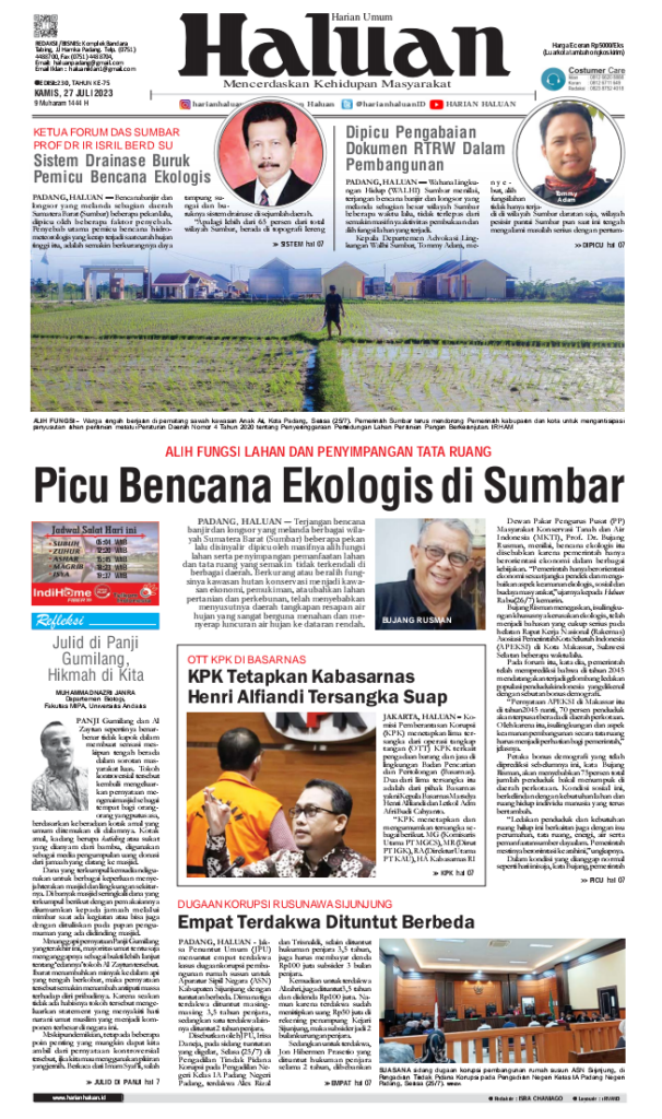 HARIANHALUAN.id – Koran Haluan edisi Kamis, 27 Juli 2023 menyajikan berita terkini seputar Sumatera Barat, Nasional hingga manca negara.