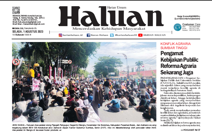 Informasi selengkapnya, silahkan baca Koran Haluan versi cetak dan digital dengan menghubungi (Telp: 08126711649 atau WhatsApp: 081277901410).