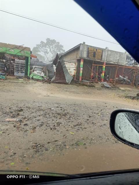 Sulistyo yang juga menjadi korban menyebutkan, warung nasinya masih aman meski pelang merek roboh.