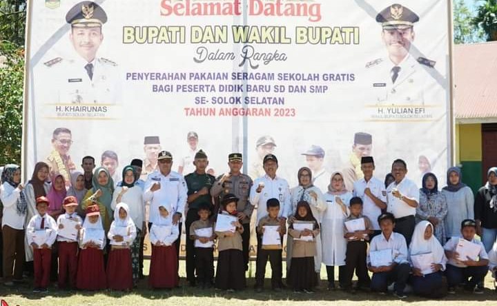 Hal ini disampaikan Bupati Solok Selatan H. Khairunas saat menyalurkan seragam gratis untuk siswa baru di Kecamatan Sangir Batang Hari, Rabu (2/8/2023).