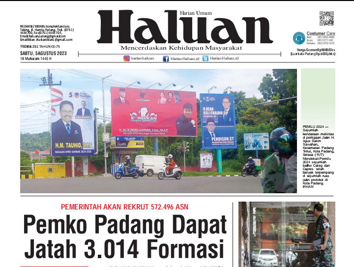 Informasi selengkapnya, silahkan baca Koran Haluan versi cetak dan digital dengan menghubungi (Telp: 08126711649 atau WhatsApp: 081277901410).
