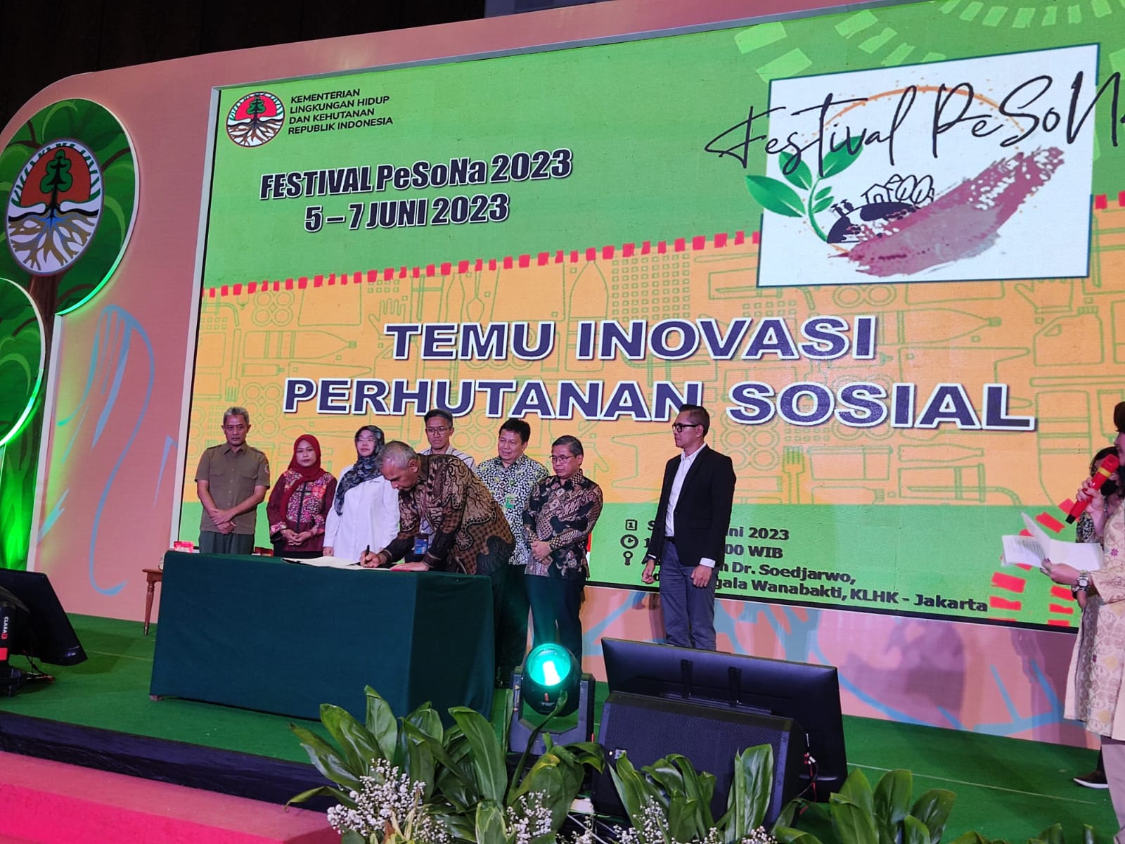 Bertempat Auditorium Dr. Soedjarwo, Gedung Manggala Wanabakti, Jakarta penandatangan pernyataan itu dilakukan dalam rangka kegiatan Festival PeSona (Perhutanan Sosial Nasional) Tahun 2023 yang dilaksanakan bertepatan dengan Hari Lingkungan Hidup Sedunia.