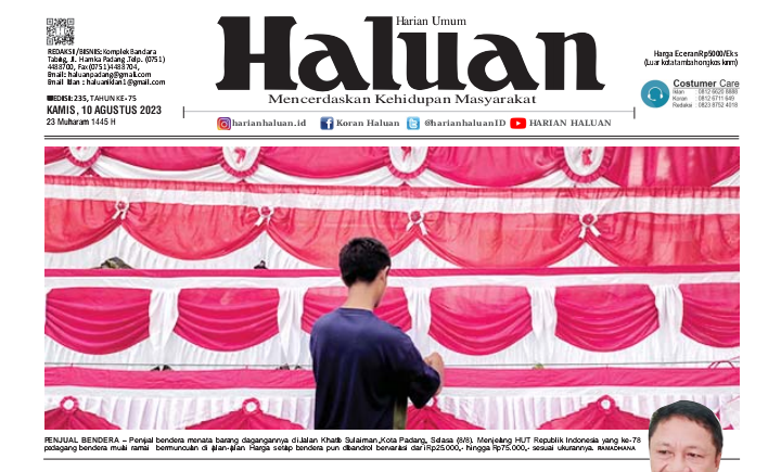Informasi selengkapnya, silahkan baca Koran Haluan versi cetak dan digital dengan menghubungi (Telp: 08126711649 atau WhatsApp: 081277901410). Dapatkan Koran Haluan setiap hari yang juga hadir versi digital (e-paper) untuk memenuhi kebutuhan informasi perantau. Silahkan klik link lapak digital myedisi berikut https://www.myedisi.com/haluan/20230726/. SELAMAT MEMBACA HALUAN! (*)