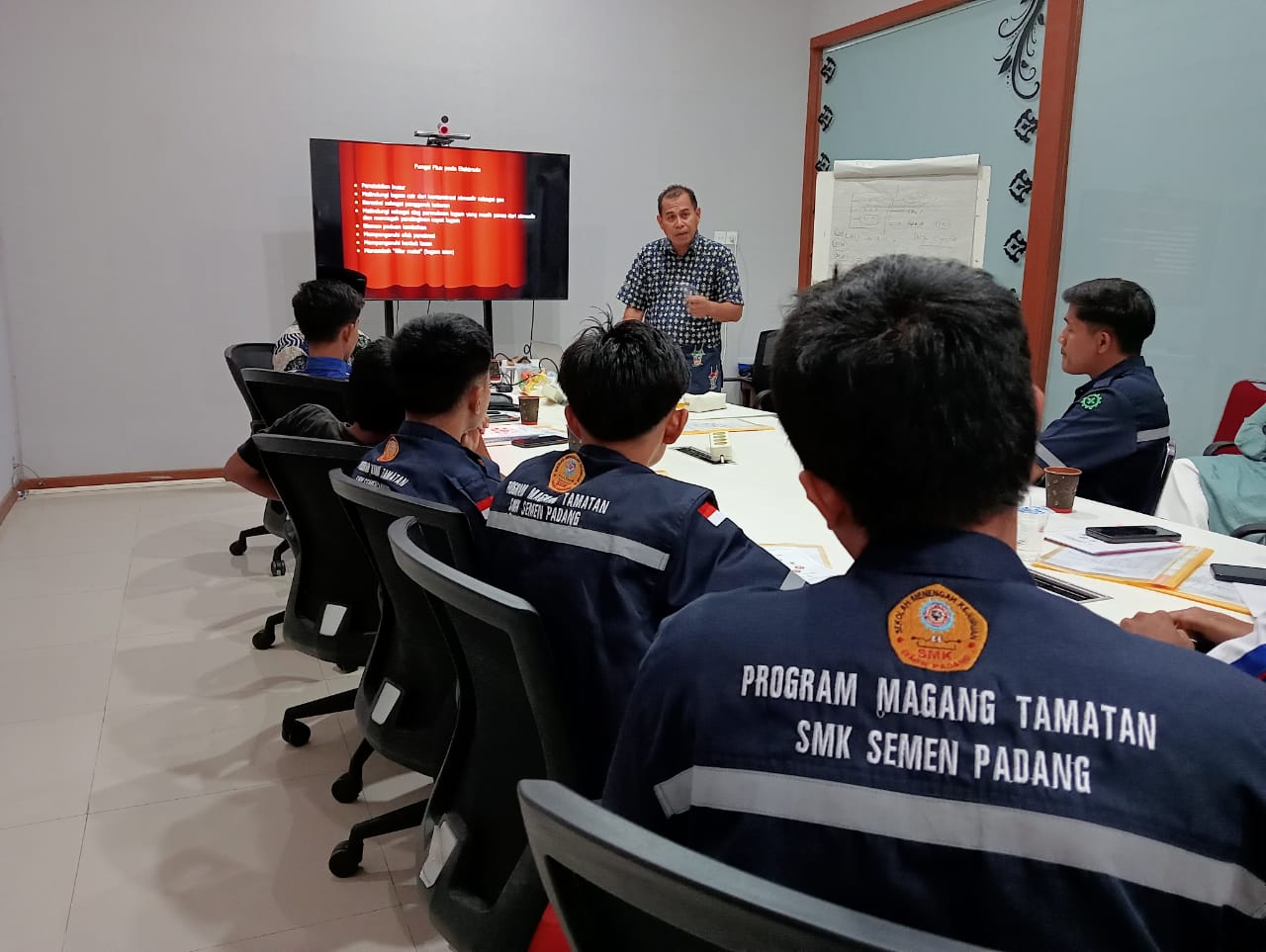 PADANG, HARIANHALUAN.ID—Peserta Program Magang Tamatan SMK Semen Padang (SMK-SP) yang mengikuti magang selama 1 tahun di PT Semen Padang, menjalani kegiatan review bulanan dan diskusi yang digelar di Rumah Knowledge Management PT Semen Padang, Jumat (7/7) siang. Program ini merupakan bagian dari upaya PT Semen Padang untuk meningkatkan peran Dunia Usaha dan Dunia Industri (DUDI) dalam dunia pendidikan.