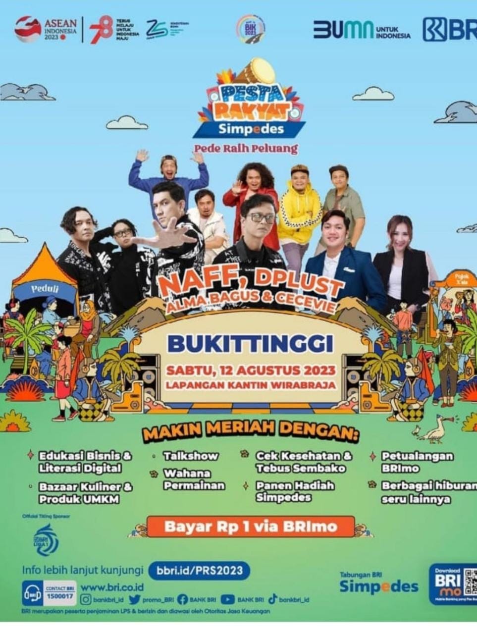 HARIANHALUAN.id–Besok, Sabtu (12/8) PT.Bank Rakyat Infonesia (Persero) Tbk akan menggelar Pesta Rakyat Simpedes di Lapangan Kantin Kota Bukitinggi yang menghadirkan band papan atas ibukota Naff.