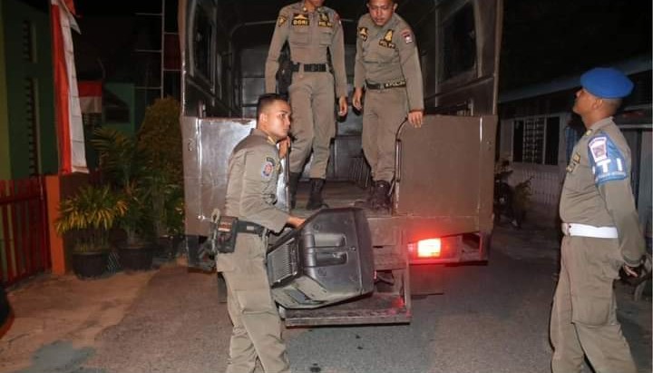 Diterangkannya, dua unit speaker berserta empat botol minol golongan A tersebut ditertibkan di salah satu resto di kawasan Jalan Batang Harau, Satu unit speaker ditertibkan di kawasan jalan Samudera.