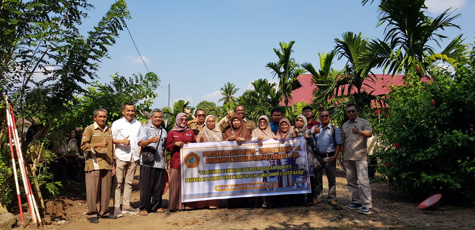 HARIANHALUAN.ID- Dosen Politeknik Negeri Padang (PNP) memberikan pelatihan teknologi terbaru terkait survey pemetaan lahan pertanian untuk guru SMKN 1 Koto Baru, Kabupaten Dharmasraya, Kamis (10/8) pekan lalu.