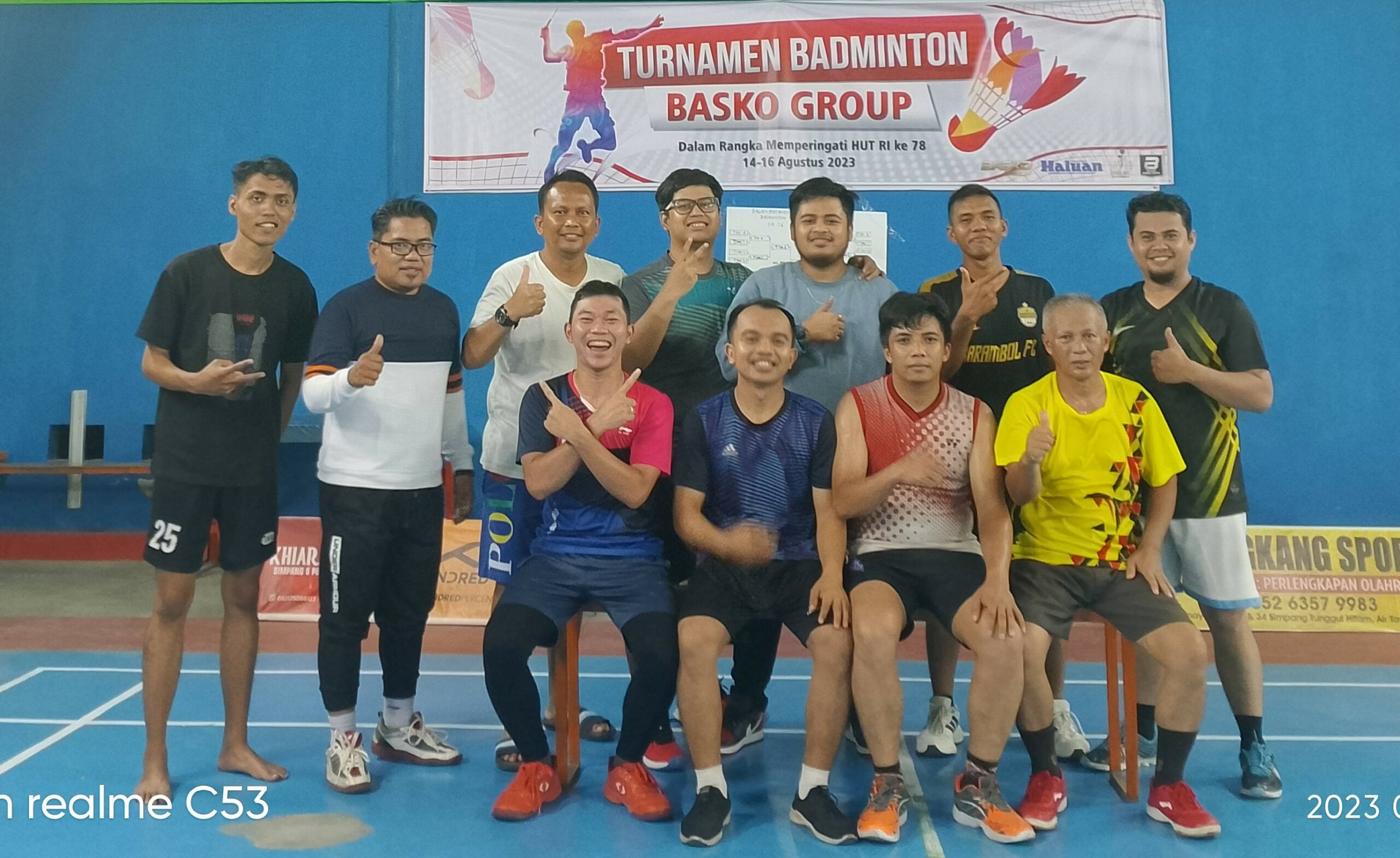 Panitia Pelaksana, Vicky mengatakan, Turnamen Badminton Basko Group yang dilaksanakan memeriahkan HUT Kemerdekaan RI ke-78 tersebut diikuti 16 pasangan ganda putra dan 8 pasangan ganda putri.