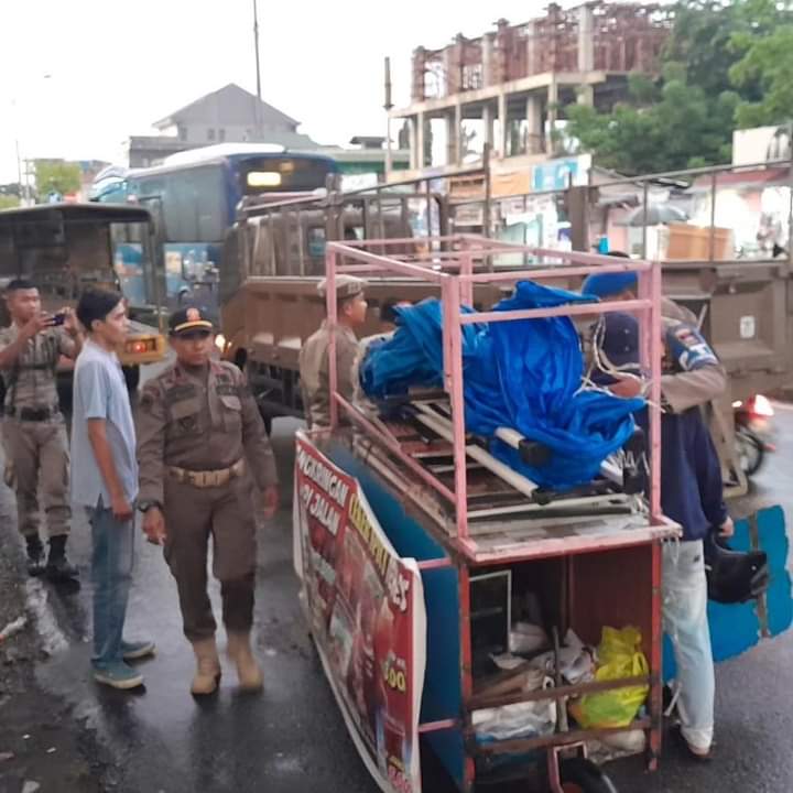 Hampir Semua Badan Tertutup, Pol PP Padang Tertibkan Gerobak PKL di Jalan Aru Lubuk Begalung