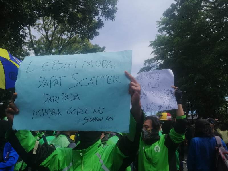 “Kami selaku driver Gojek, hari ini turun ke jalan, karena kami pun turut terdampak dengan kebijakan pemerintah yang semakin hari, semakin menyusahkan,” ujar seorang driver Gojek yang mengaku bernama Alex.
