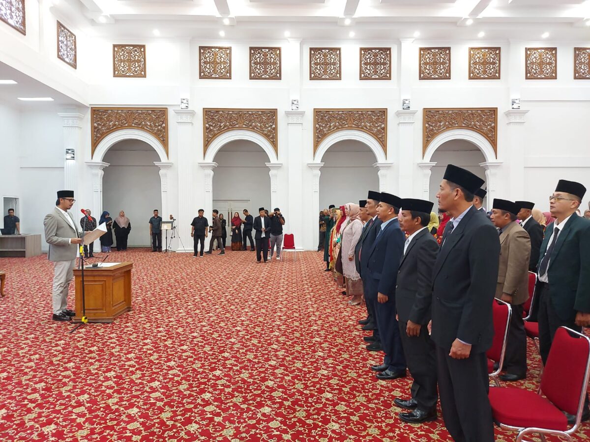 HARIANHALUAN.ID – Sebanyak 42 pejabat administrator dan pejabat pengawas dilingkungan Pemko Bukittinggi dilantik oleh Wali Kota di Balairung rumah dinas Wali Kota Bukittinggi, Kamis (31/8).