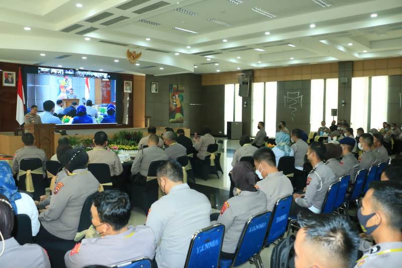 “Pembenahan sistem SDM unggul dimulai dari penilaian 13 komponen,” ucap Wakapolda Sumbar saat membacakan amanat Kapolda.
