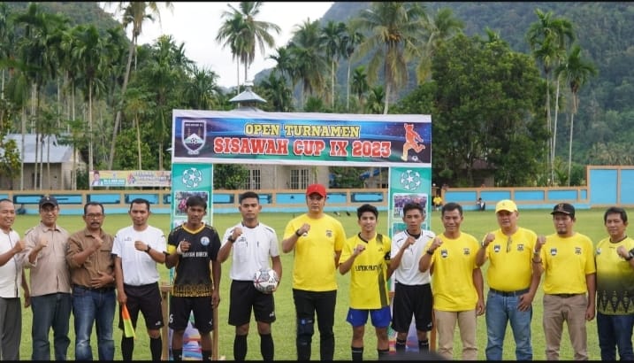 SIJUNJUNG, HARIANHALUAN.ID– Bupati Sijunjung Benny Dwifa Yuswir membuka secara resmi open turnamen sepakbola Sisawah Cup IX Tahun 2023, Sabtu (23/9) di Lapangan Kurnia Hijau Nagari Sisawah, Kecamatan Sumpur Kudus.