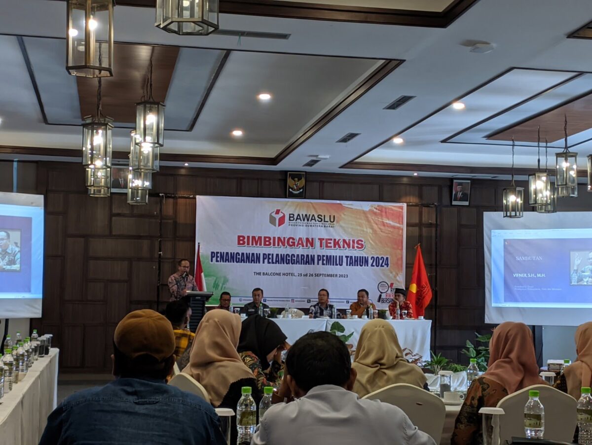 HARIANHALUAN.ID – Badan Pengawas Pemilu (Bawaslu) Provinsi Sumatera Barat (Sumbar) menggelar Bimbingan Teknis (Bimtek) yang dilaksanakan di The Balcone Hotel pada Senin, (25/9). Bimtek tersebut bertujuan untuk membekali anggota Bawaslu dalam melakukan Penanganan Pelanggaran Pemilu Tahun 2024.