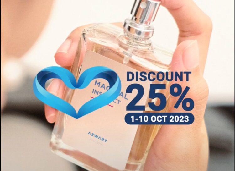 Kali ini, Azwa dan AzzwarS Perfume memberikan promo menarik berupa diskon belanja sebesar 25 persen yang mulai berlaku dari tanggal 1 Oktober hingga 10 Oktober 2023.
