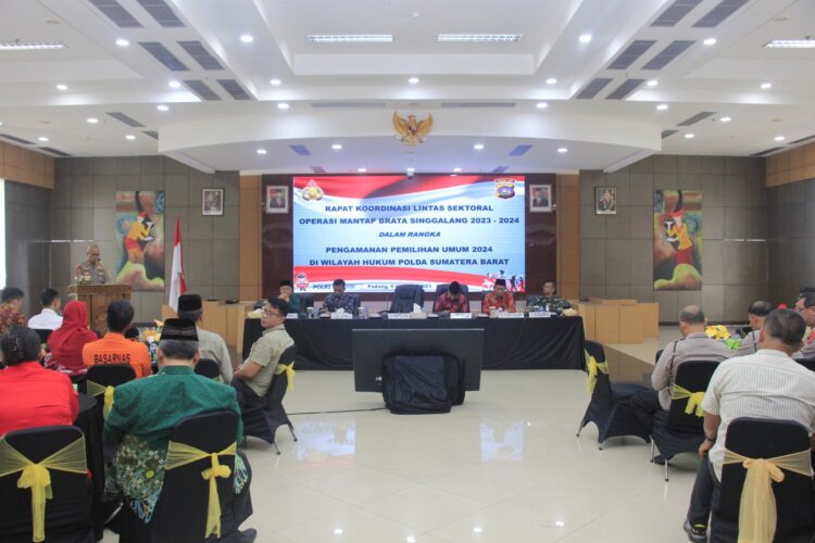 HARIANHALUAN.ID – Mempersiapkan pengamanan Pemilu 2024, Polda Sumatra Barat (Sumbar) menggelar rapat koordinasi (rakor) Lintas Sektoral, Jumat (6/10/2023) di ruang Jenderal Hoegeng Mapolda Sumbar.