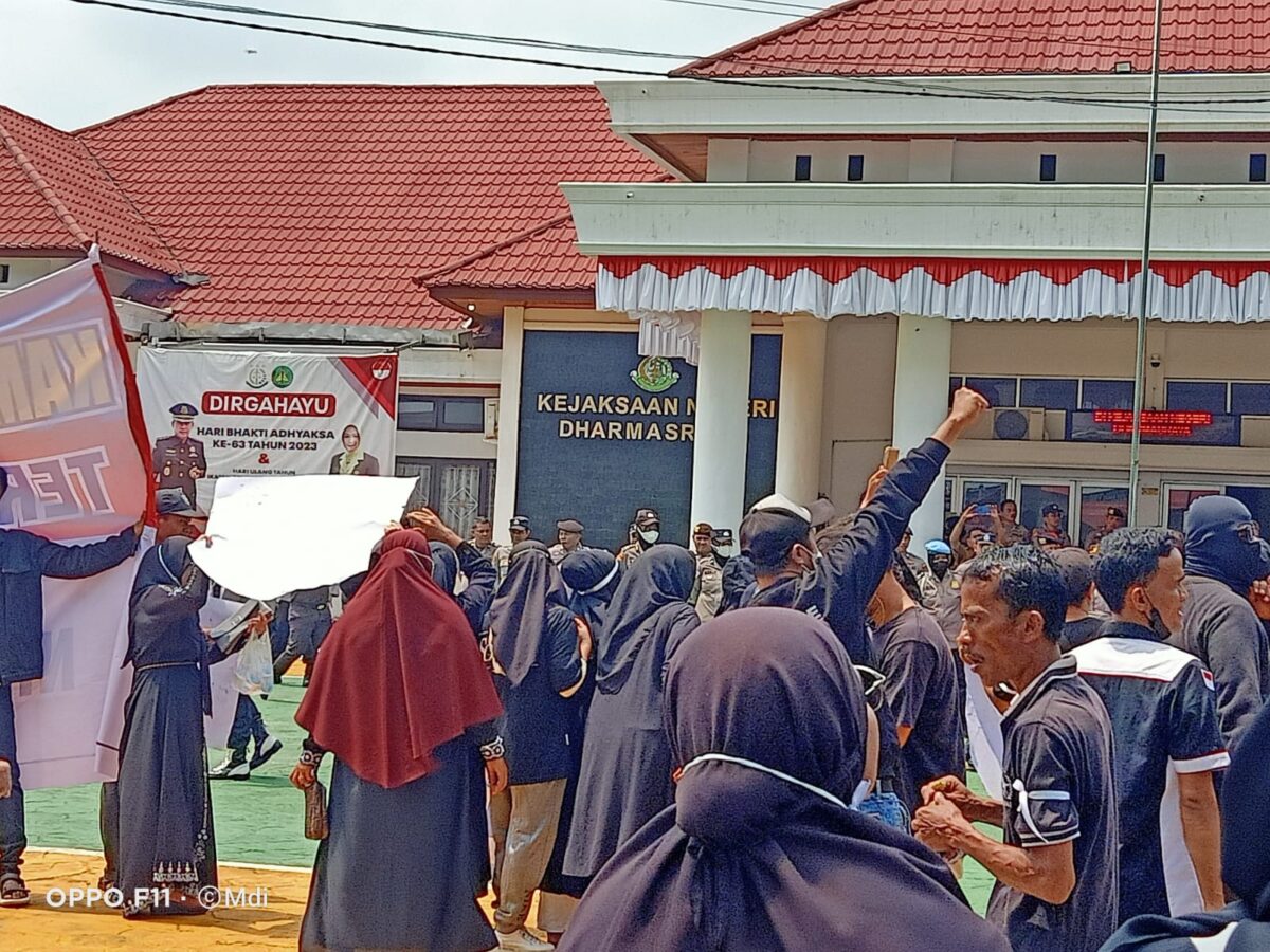Aksi massa dari Nagari Sikabau di Kejaksaan Negeri Dharmasraya. MARYADI