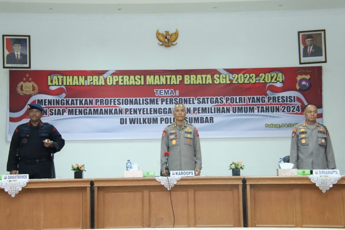 HARIANHALUAN.ID – Menjelang dimulainya Operasi Mantap Brata Singgalang 2023-2024, Polda Sumbar melaksanakan kegiatan Latihan Pra Operasi (Latpraops) yang diadakan di lantai 3 Gedung Sabhara Polda Sumbar, Senin (9/10/2023).