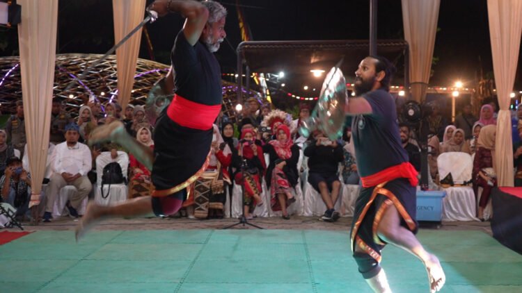 HARIANHALUAN.id – Aksi dua orang pesilat Bennet James dan Edward Brown asal Birmingham Inggris menjadi penanda dimulainya rangkaian pembukaan Festival Warisan Budaya Tak Benda (WBTB) atau Intangible Cultural Heritage Festival (ICHF), di Agamjua Art & Cultural Kota Payakumbuh, Kamis (12/10/2023) malam.