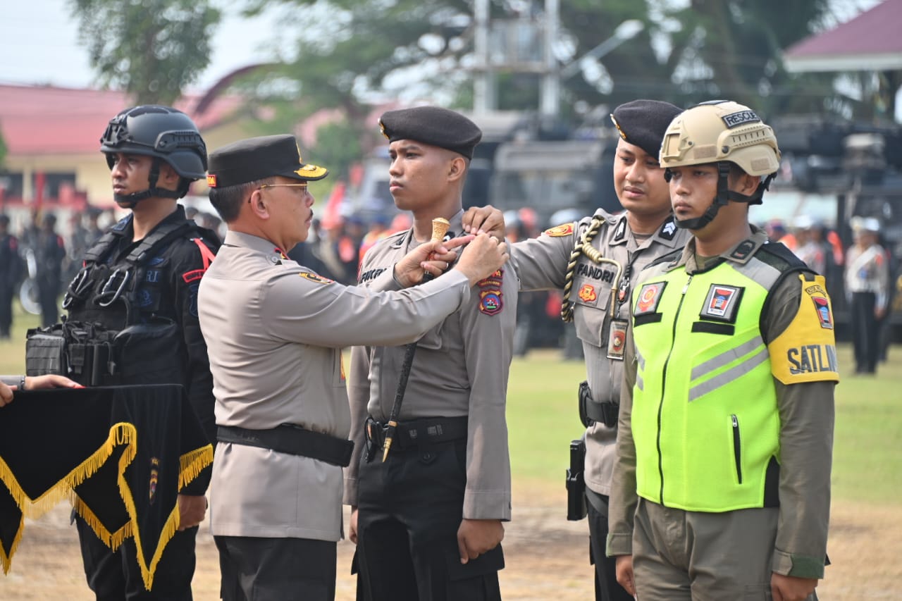 “Kita ketahui bersama Pemilu 2024 kali ini adalah pesta demokrasi terbesar yang akan menjadi bukti kematangan demokrasi Indonesia dan sekaligus menjadi titik penentuan masa depan bangsa,” ucap Kapolda saat membacakan amanat Kapolri.