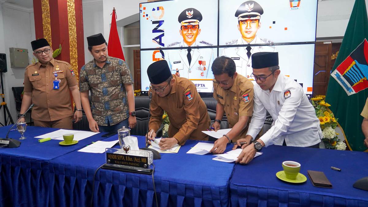 Penandatanganan dilakukan langsung oleh Wako Hendri Septa dengan Ketua KPU Kota Padang Riki Eka Putra, Ketua Bawaslu Kota Padang Eris Nanda dan Sekretaris Daerah Kota Padang Andree Algamar selaku Tim TAPD, bertempat di Gedung Putih Rumah Dinas Wali Kota Padang, Senin malam (16/10).