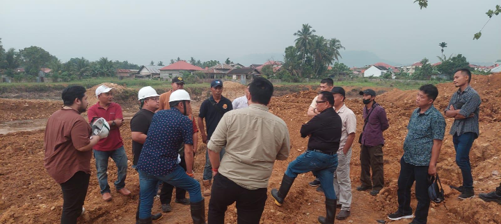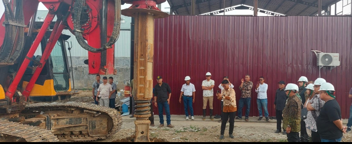 Basrizal Koto didampingi jajaran manajemen Basko Group menyaksikan alat berat pengeboran pondasi Gedung Basko City Mall Padang.