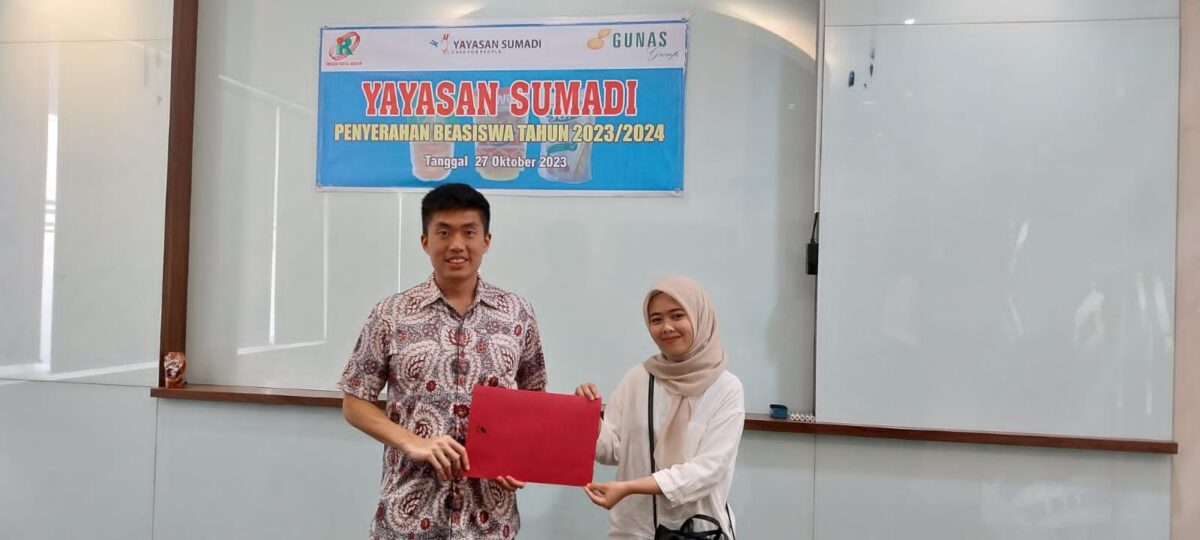 Penyerahan beasiswa tahun ajaran 2023/2024 melalui Yayasan Sumadi tahun 2023 ini sebanyak 17 mahasiswa dengan beberapa persyaratan yang diberikan perusahaan yang bergerak pada bidang perkebunan itu.