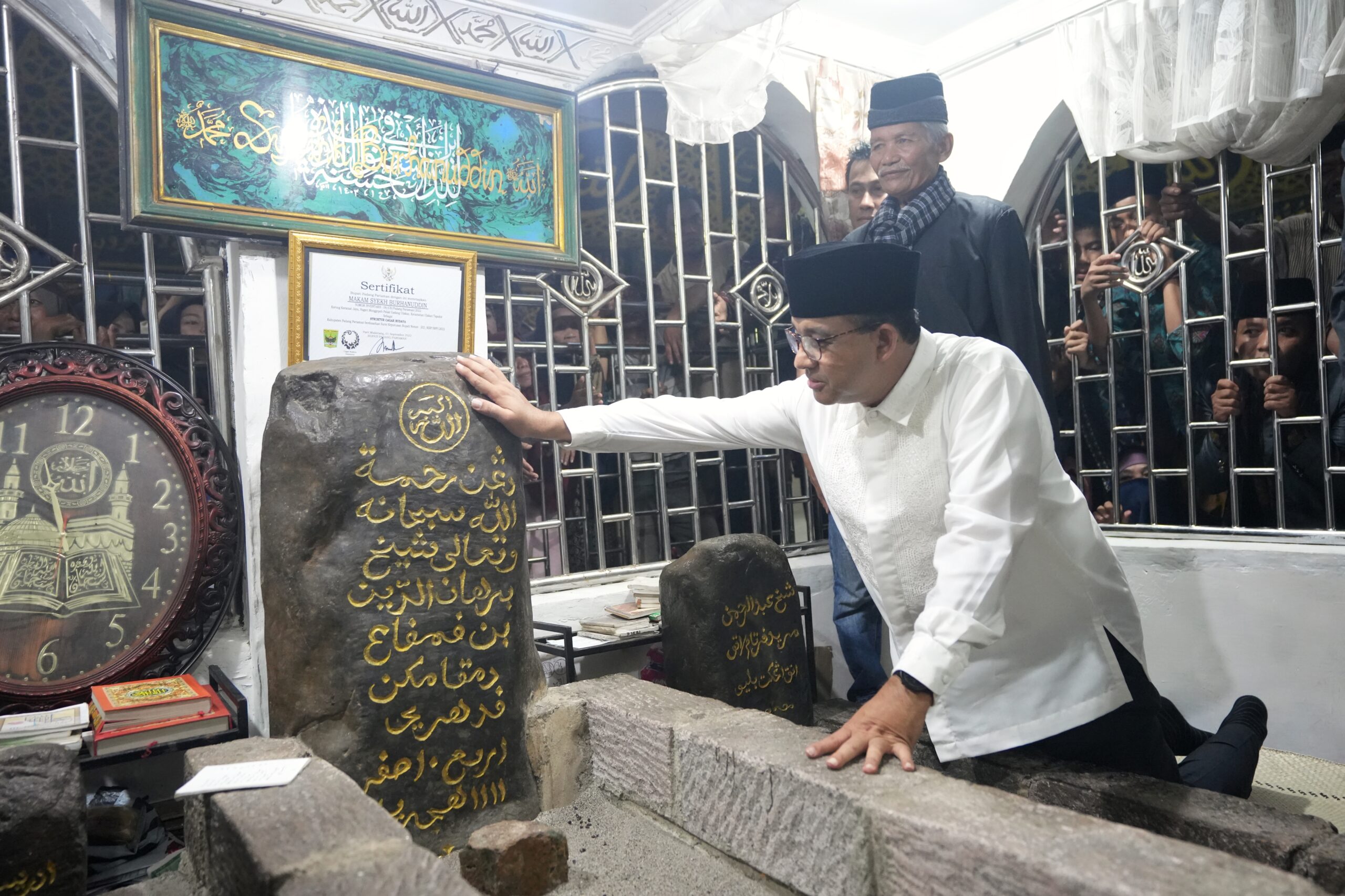 PADANG PARIAMAN, HARIANHALUAN.ID – Bakal Calon Presiden (Capres) Anies Rasyid Baswedan berziarah ke makam Syekh Burhanuddin di Nagari Manggopoh Palak Gadang, Kecamatan Tapakis Ulakan, Padang Pariaman, Rabu (1/11/2023).
