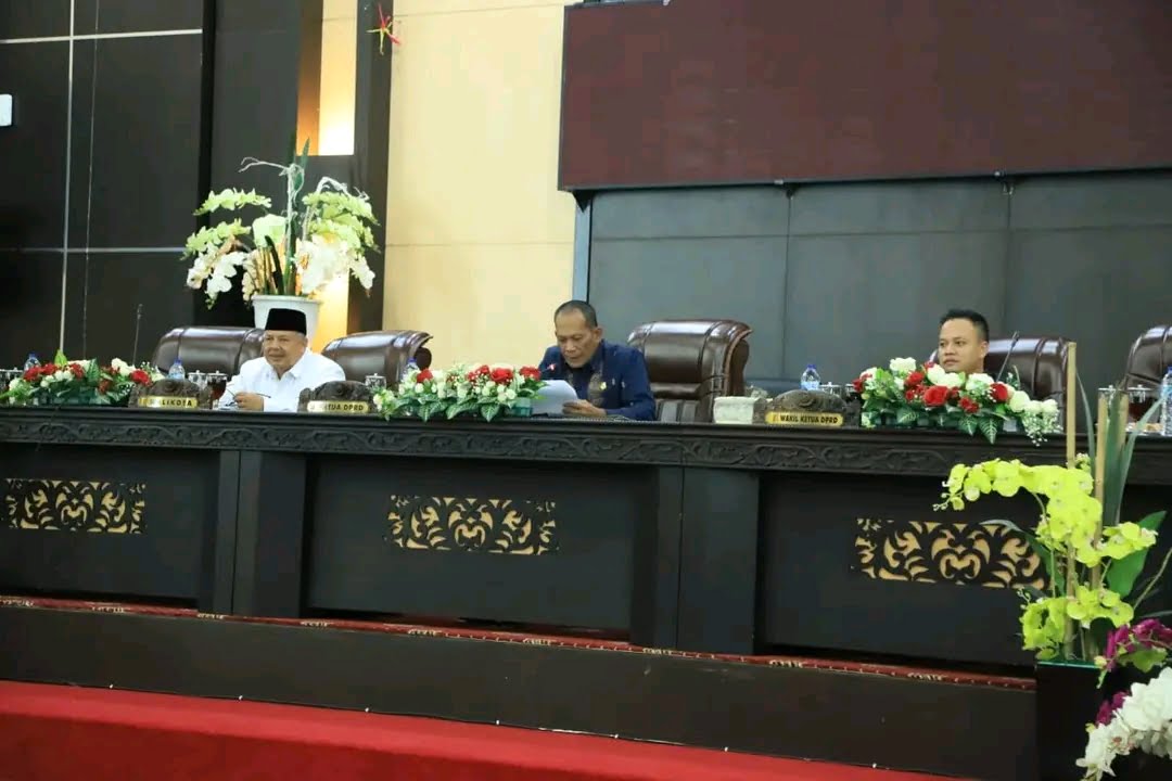 Wakil Ketua DPRD Kota Solok, Efriyon Coneng memimpin rapat paripurna terkait Ranperda APBD 2024 dan Ranperda Pajak Daerah di ruang rapat paripurna DPRD Kota Solok, Sabtu (4/11). IST