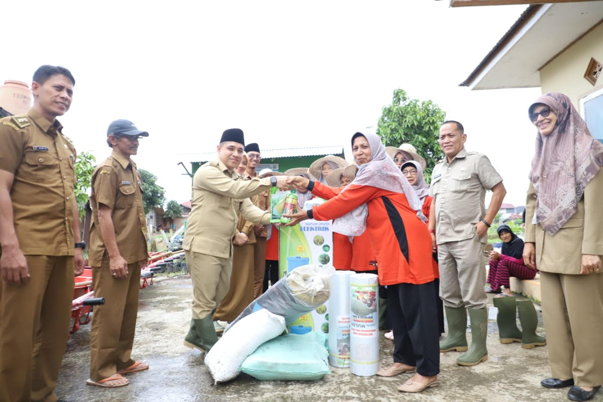 BUKITTINGGI, HARIANHALUAN.ID — Ketua DPRD Kota Bukittinggi Beny Yusrial menyerahkan bantuan Pokir untuk Kelompok Wanita Tani (KWT) Tunas Baru Kelurahan Ladang Cakiah Kecamatan Aur Birugo Tigo Baleh (ABTB), Senin (6/11).