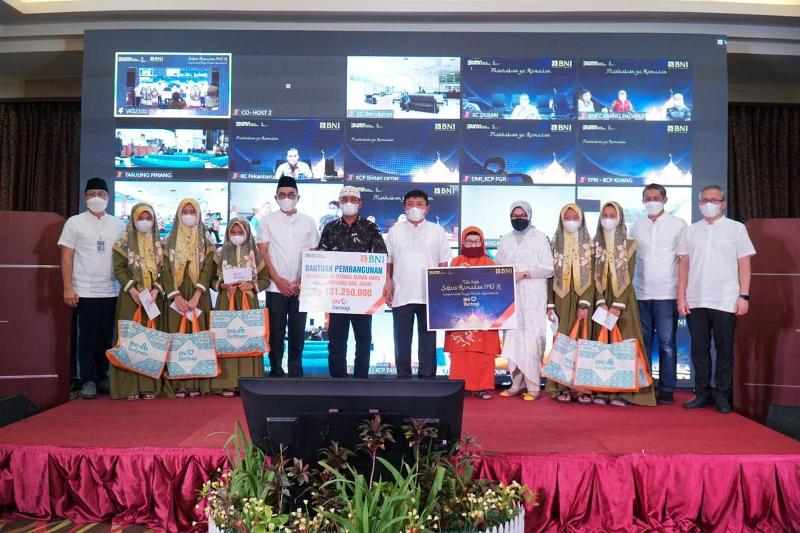 Bantuan yang berasal dari dana CSR sebagai bentuk tanggung jawab sosial BNI terhadap lingkungannya tersebut diserahkan saat acara Safari Ramadan di Kota Bukittinggi, Kamis (14/4/2022).