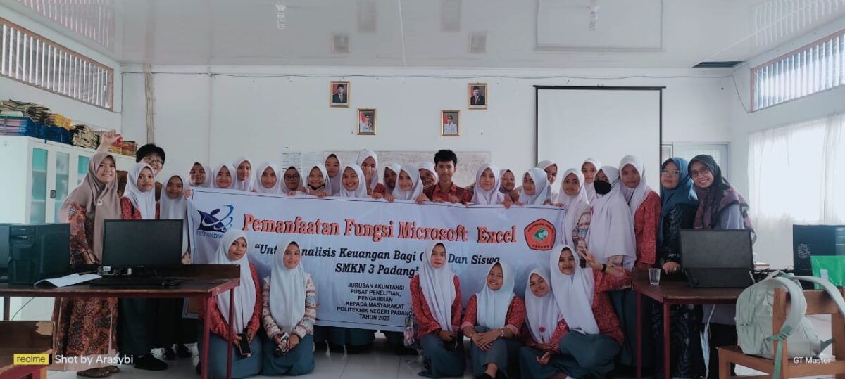 Untuk itu, Tim Dosen Akuntansi PNP melakukan pengabdian masyarakat di SMK Negeri 3 Padang dalam bentuk memperkenalkan fungsi keuangan kepada siswa kelas XII dengan tujuan agar siswa mampu mengaplikasikannya dalam parktik keseharian. Kegiatan ini juga difasilitasi secara pendanaan oleh PNP melalui Pusat Penelitian dan Pengabdian Masyarakat (P3M) PNP.