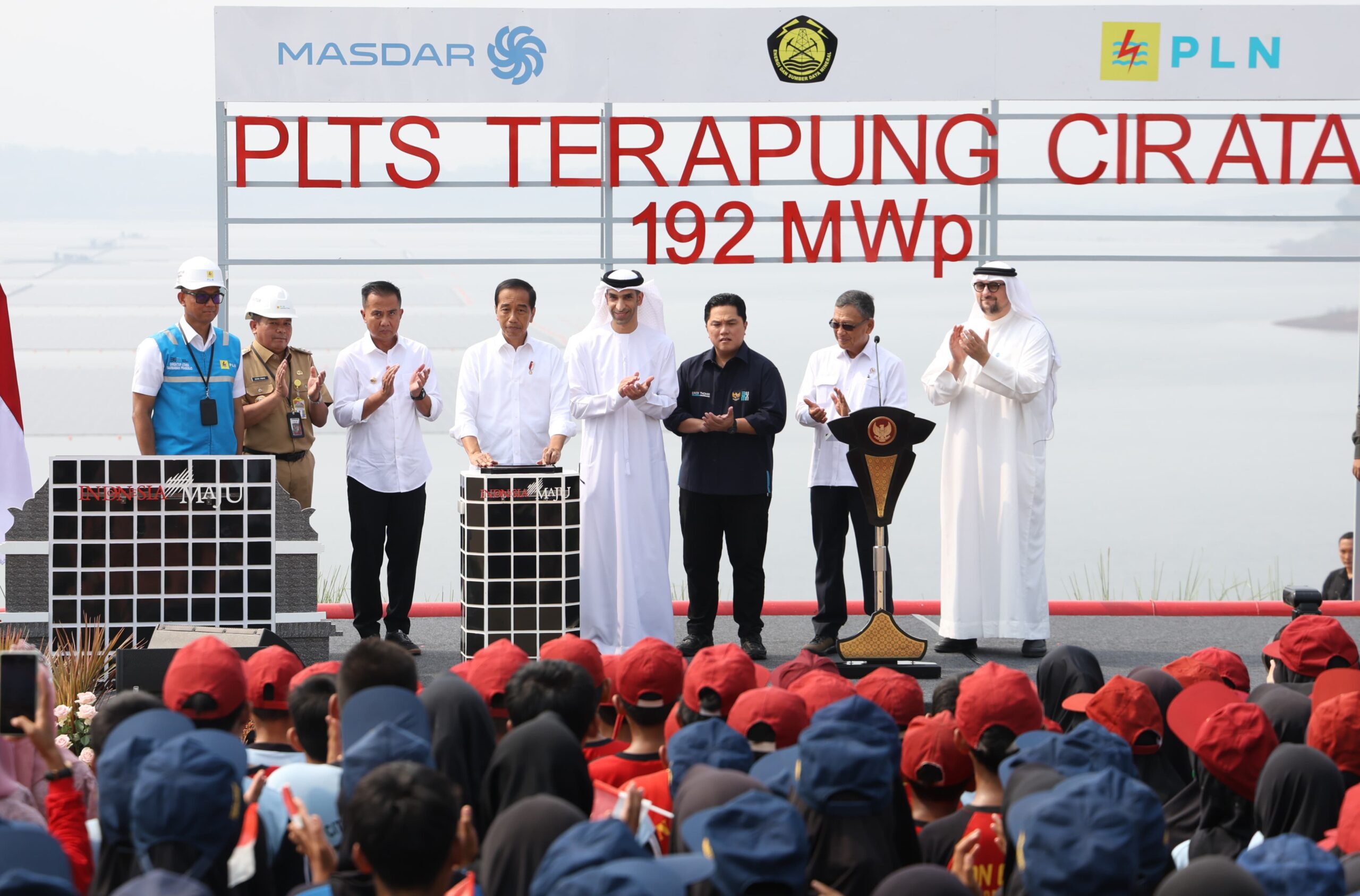 “Ke depan, kalau dimaksimalkan bisa menambah kurang lebih 1.000 Megawatt peak. Saya gembira dan bangga melihat PLTS Terapung di Cirata ini telah selesai, ini hasil kerja sama Kementerian ESDM, Kementerian BUMN, bersama PLN dan kolaborasi dengan kekuatan dunia yaitu Masdar dari Uni Emirat Arab (UEA),” tegas Presiden.
