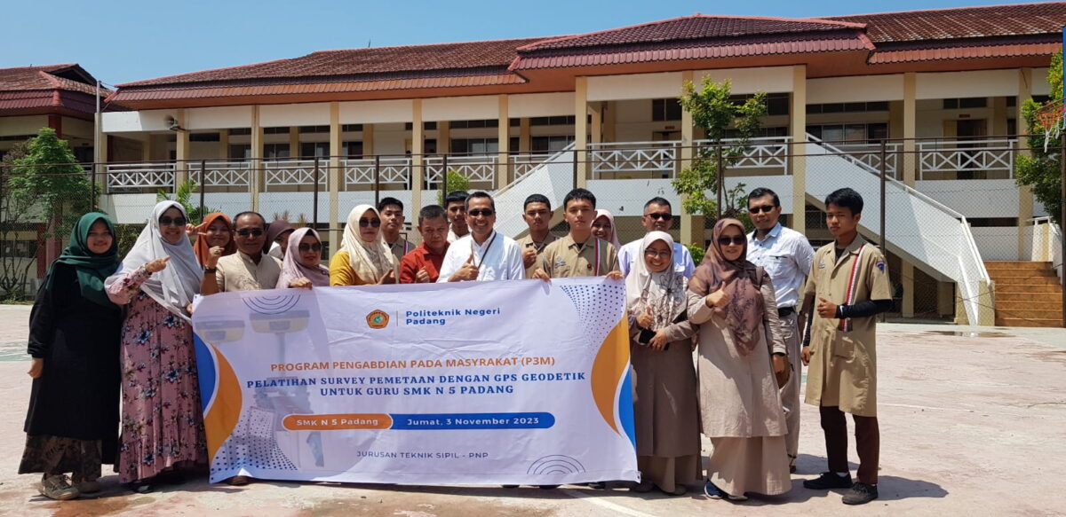 PADANG, HALUAN – Tim Dosen Politeknik Negeri (PNP) Padang yang terdiri dari, Era Alfansyuri, ST. MT, Mukhlis, ST., MT, Enita Suardi,ST.,MT, Lusyna,ST.,MT dan Indra Agus,ST.,MT memberikan pelatihan survey pemetaan dengan GPS Geodetik kepada guru-guru SMKN 5 Padang, Kamis (3/11).
